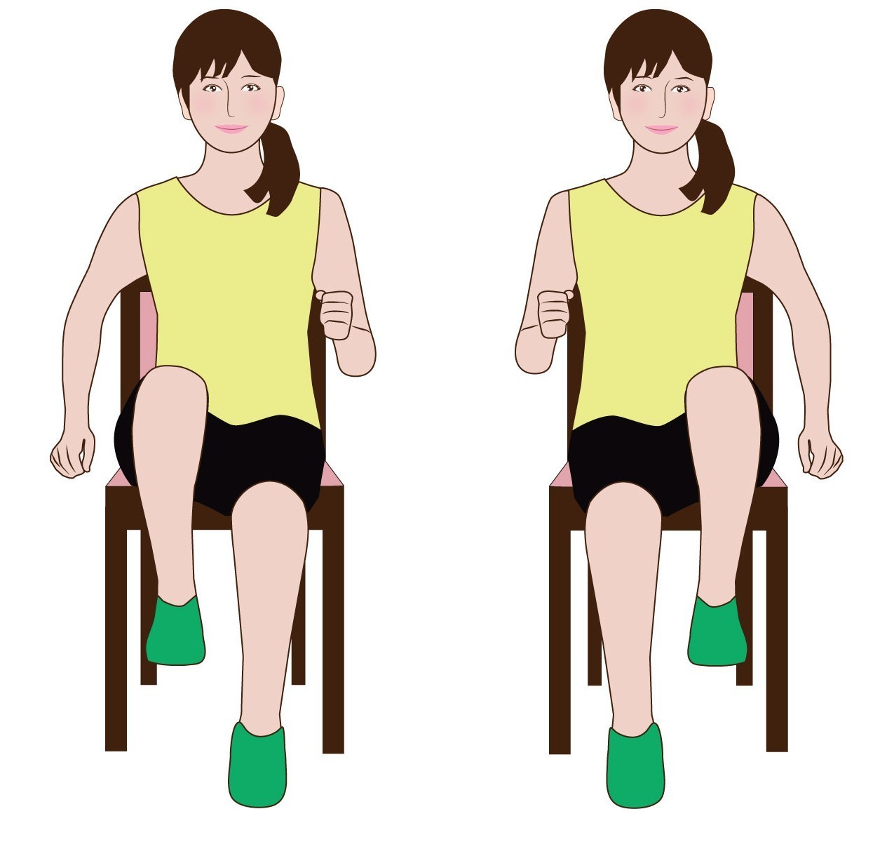 1.寒い時、温まった空気は襟元から逃げます 座って膝を少し上げて足踏み